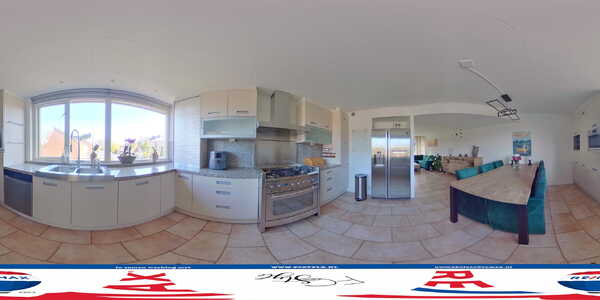 In de woonkeuken staat een zeer ruime hoekopstelling met een natuurstenen aanrechtblad met bijpassende achterwand. Deze keuken heeft veel bergruimte en de 5- pits Solitaire gasfornuis met grote oven, vaatwasser (2022), Amerikaanse koel-/vriescombinatie (2014), combimagnetron en Quooker (2019) zorgen voor vele uren kookplezier.