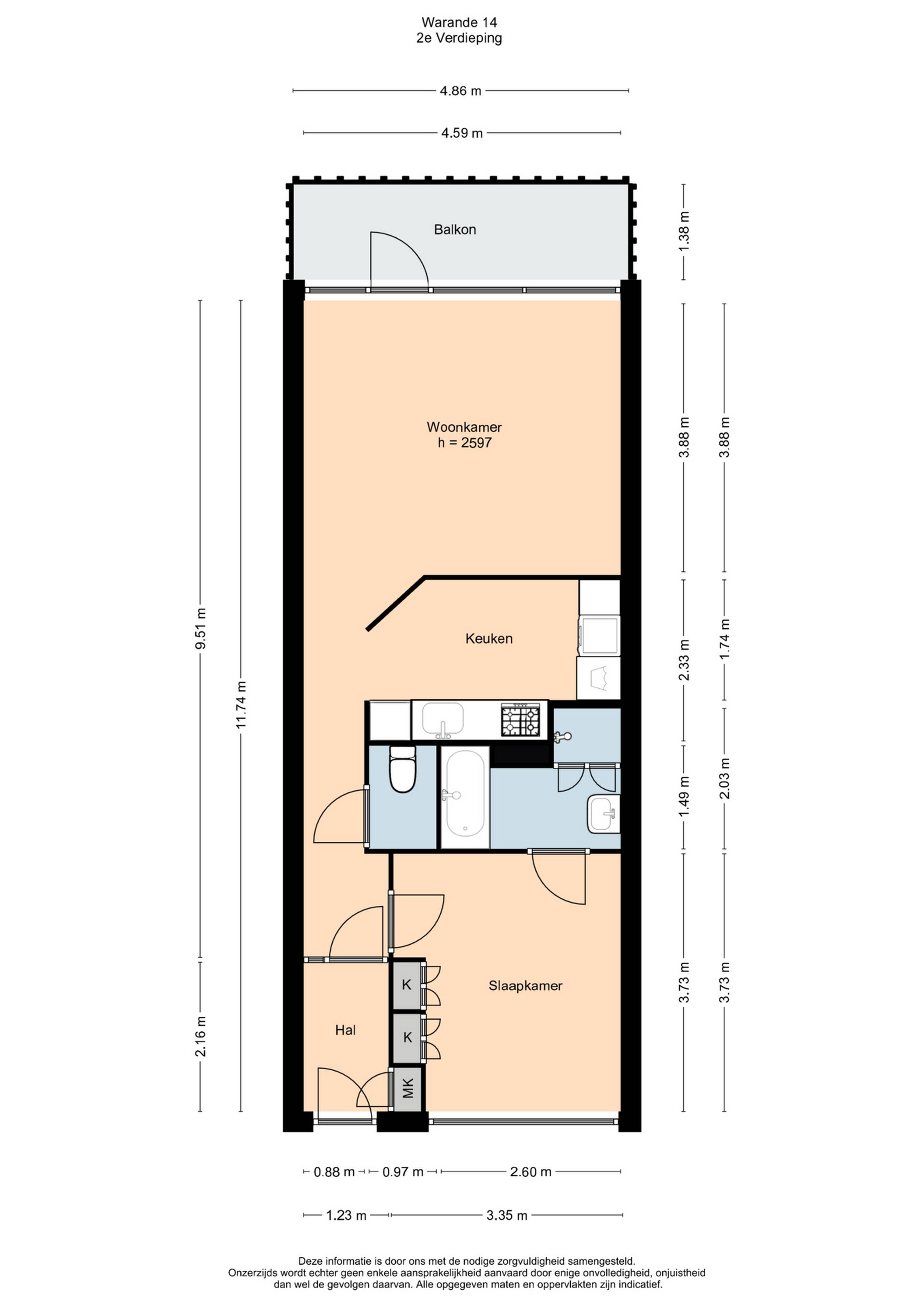 Woonoppervlak: Ruime 54 m² aan leefruimte.