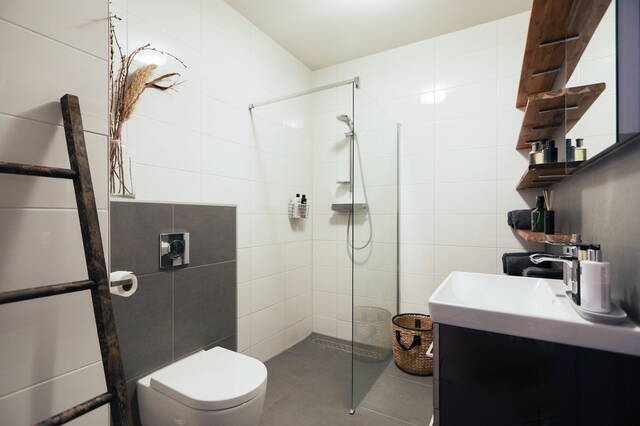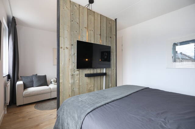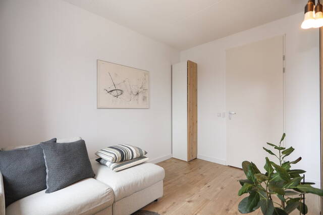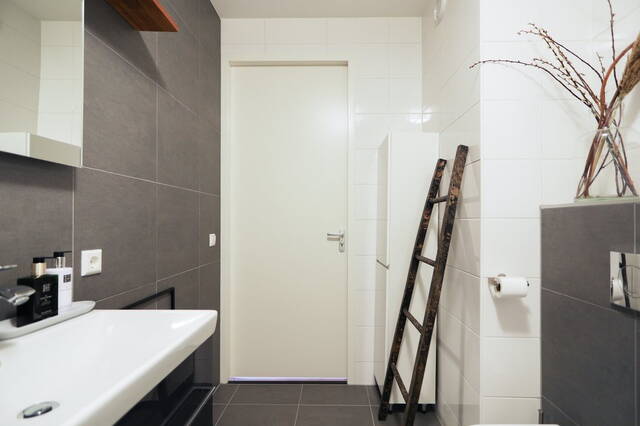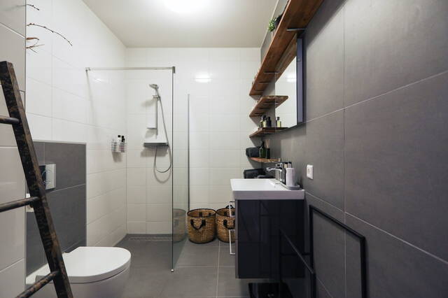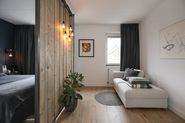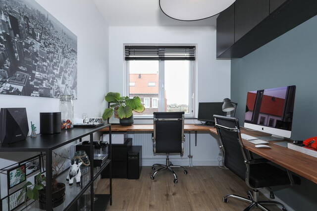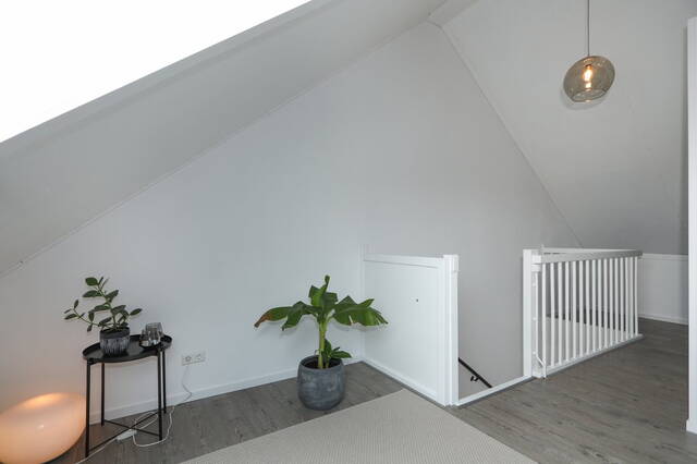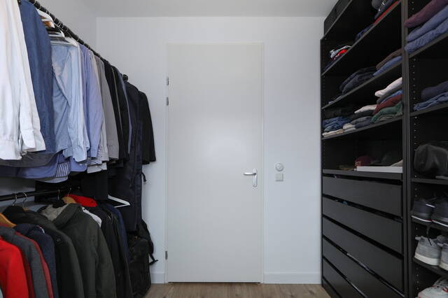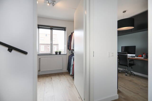 Overloop met toegang tot alle vertrekken op de 1e verdieping. Voorzien van 3 modern ingerichte slaapkamers waarvan er op dit moment een in gebruik is als walk-in closet en de andere kamer als werkkamer. De moderne badkamer is voorzien van een inloopdouche, zwevend toilet, wastafel en wastafelmeubel. Welke opgewassen is tegen de grootste verkeersdrukte in de ochtend. Genoeg ruimte voor een groot gezin!