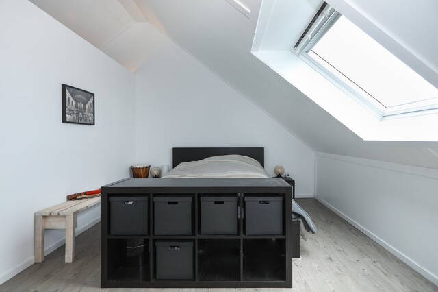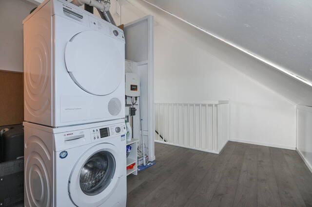 Hier staan de wasmachine, droger, zonnepanelen installatie en CV-Ketel uit 2018 opgesteld. Tevens heb je in deze ruimte zeer veel bergmogelijkheden middels knieschotten (aan beide zijde). Tevens voorzien van een dakraam aan de tuinzijde.