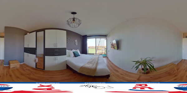 Het appartement heeft een zeer ruime slaapkamer met een schuifpui naar het balkon. Net als in de rest van het appartement ligt er een mooie laminaatvloer en zijn de wanden in een mooie kleurencombinatie geschilderd. Zoals u ziet is deze slaapkamer groot genoeg voor een tweepersoonsbed en een grote garderobekast.