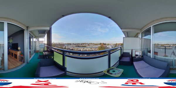 In de middag en avond in de zon zitten; het is een van de voordelen van dit appartement. Het balkon is maar liefst 6.50 meter breed en ligt op het westen. Op de betonvloer ligt grastapijt en het overzicht over de lage bebouwing is prachtig.
