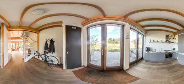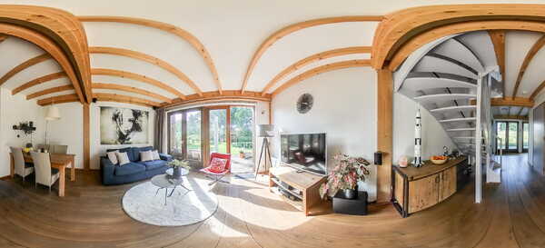Via de open entree, waar je ook de meterkast vindt, kom je binnen in de lichte, open keuken die is voorzien van moderne inbouwapparatuur. De gezellige woonkamer heeft grote raampartijen, waardoor er veel natuurlijk licht binnenkomt. Het uitzicht op de tuin maakt dit de perfecte plek om te ontspannen. De houten balken en vloer geven de ruimte een warme en knusse uitstraling. Hier voel je je meteen thuis!
