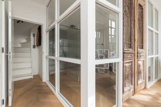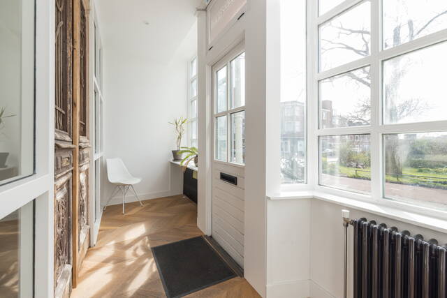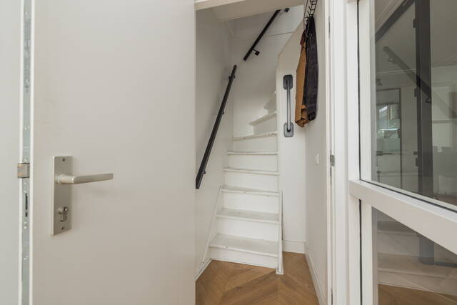 Je komt binnen in de lichte gezamenlijke hal waar je via je eigen trapopgang naar de eerste verdieping gaat.